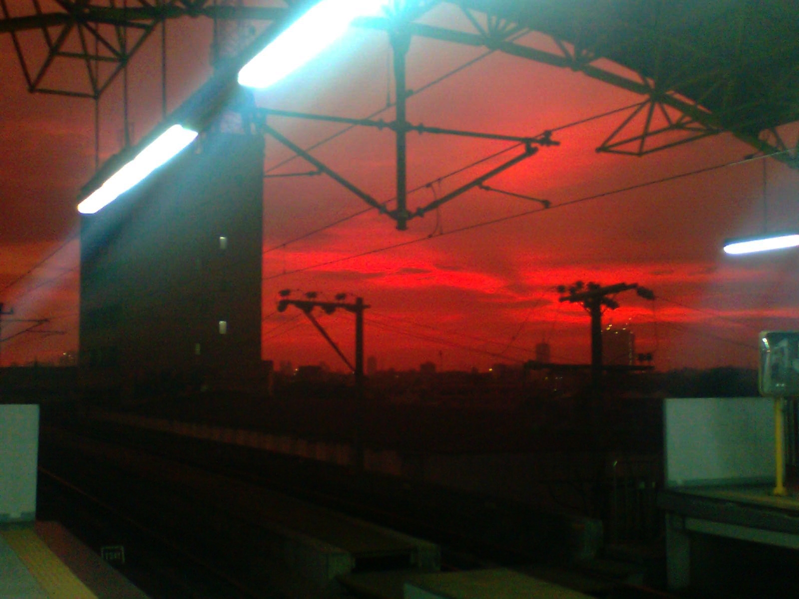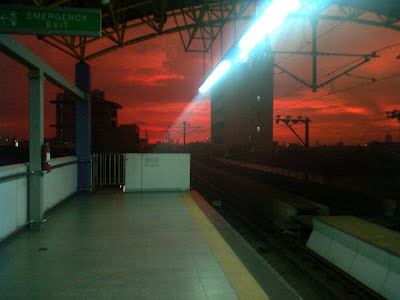 It was fifteen past six this evening and at the moment I left the exit and signed off at the bio-metric scanner, I realized that everything outside the office building turned RED. It wasn't a normal sunset and I could not stop noticing it even at the time I got into my first homeward stop at the J. Ruiz LRT 2 station, I find it irresistible to use my ancient phone and took some shots in the upper, western Manila sky...