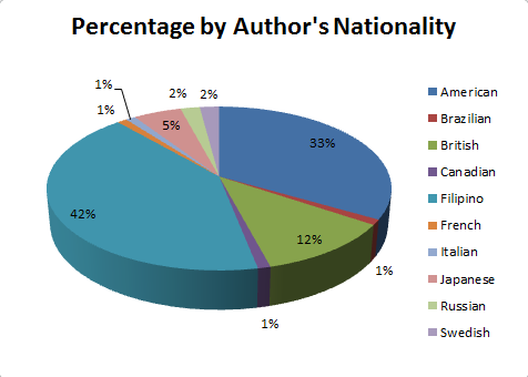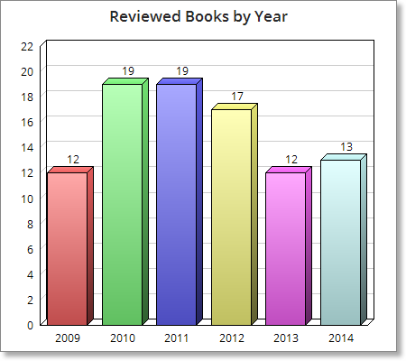 The following are my current statistics (as of January 2015) regarding books that I reviewed since the creation of this blog in the middle of 2009. It is also important to clarify that: